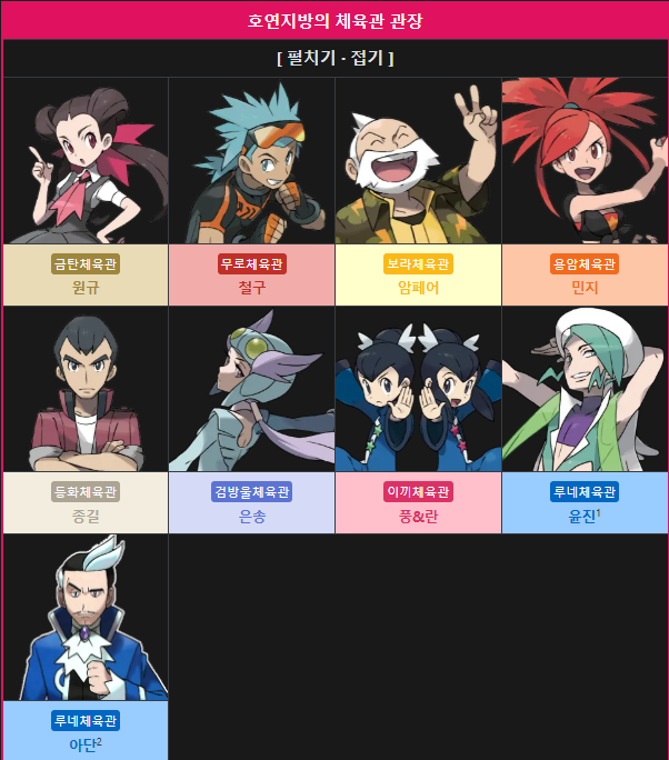 | 체육관 | 체육관장 | 타입 |